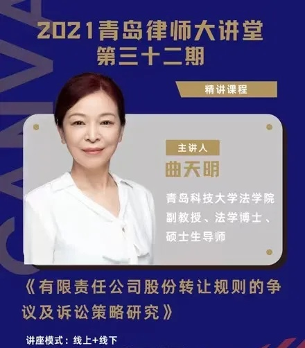 近日,由青岛律师学院主办、市律协公司专业委员会承办的第三十二期青岛律师大讲堂在诺德广场市律协会议室举行。本期大讲堂公司专委会邀请到9999js金沙老品牌巾帼普法宣讲团负责人曲天明老师主讲。
