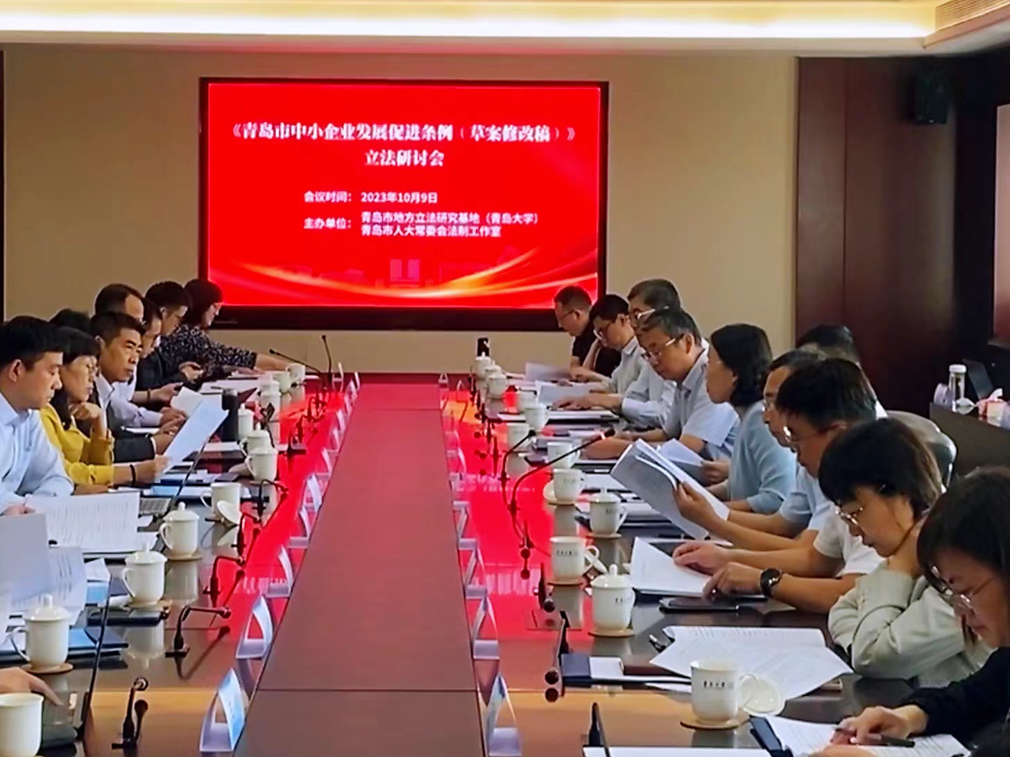2023年10月9日,由青岛市人大常委会法制工作室、青岛市地方立法研究基地(青岛大学)主办的《青岛市中小企业发展促进条例》立法研讨会在青岛大学浮山校区会议中心举行。青岛市人大常委会副主任陈金国、市人大常委会法制工作室主任张桂芹、青岛大学副校长刘彩云等领导出席会议,来自中国政法大学、山东大学、中国海洋大学、青岛大学、众成清泰律师事务所等机构的50余位专家学者出席会议并进行了研讨。9999js金沙老品牌院长王金堂教授应邀出席会议,并做了题为“《青岛市中小企业发展促进条例》立法的几个问题”的专题发言。