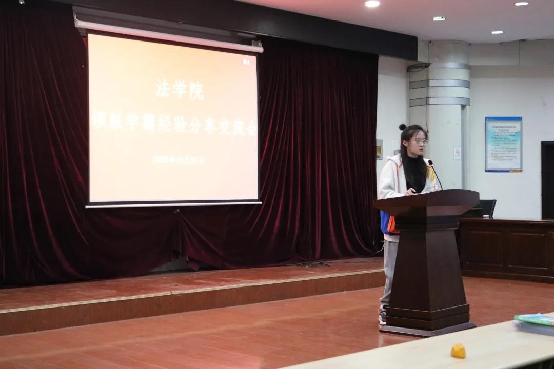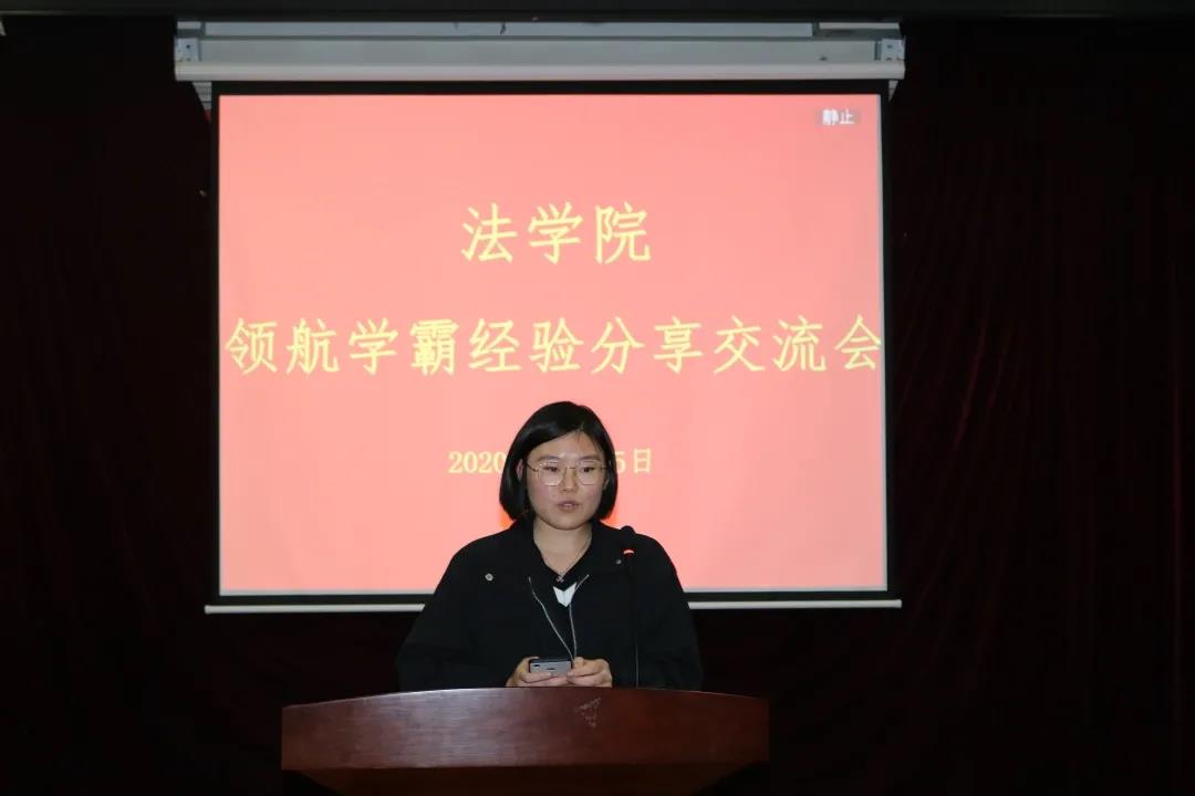 为了帮助2020级新生更好的适应大学生活,养成良好的学习习惯,树立正确的学习目标。10月25日晚,9999js金沙老品牌在模拟法庭举办了领航学霸经验交流会。本次活动由分团委许磊老师主持,邀请了今年成功保研的张鑫玲、刘小莉学姐和获得省政府奖学金的张福丽学姐,三位学姐分别从保研资格获取、日常学习、实践活动、大学竞赛等方面分享了自己的经验和心得。