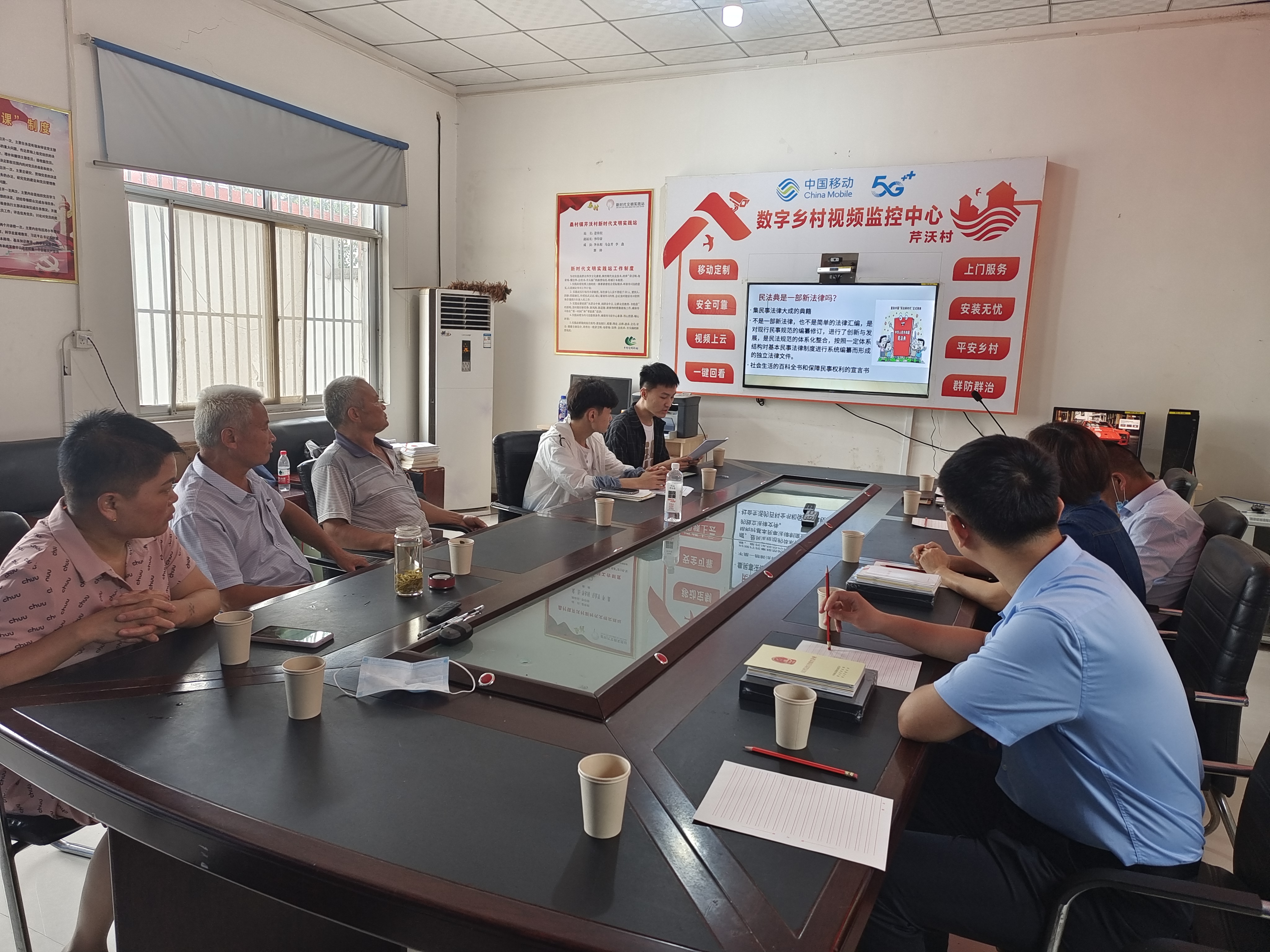 7月12日,芹沃村村委会召开村委会,山亭区区委副书记、桑村镇第一书记、芹沃村书记、芹沃村妇女主任等参加座谈会,就芹沃村现有的法律问题和芹沃村法律宣传工作的开展以及法治政府的建设和支教团展开交流。随后,支教团和山亭区区委副书记一起为芹沃村三个自然村发放了包括社会保障法、保险法、妇女权益保障法等多部法律在内的法条。当日下午,支教团结合当地实际情况和当地派出所联合举办了警民恳谈会,进行了防诈骗相关的法律知识普及。