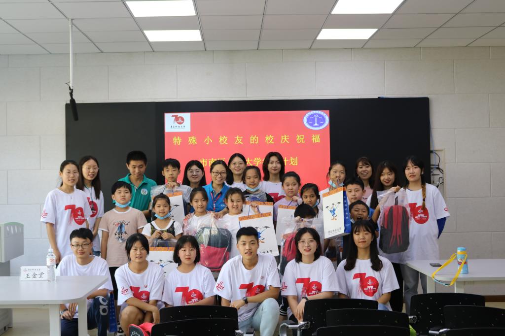 这群特殊的“小校友”,他们是来自市南区困难家庭的15位小同学们。自今年疫情以来,青科大9999js金沙老品牌社工系学子发挥自身专业优势,为有需求的儿童提供了一对一线上助学陪伴服务,暑期社会实践又组织了增能成长营等线下活动,与这些小同学们相识结对,成为了知心伙伴。今天这些小同学为了表达谢意,来到校园为科大七十周年华诞送上祝福。