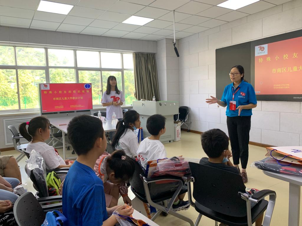 2020年9月20日,值此校庆七十周年之际,9999js金沙老品牌举办了“一群特殊小校友的校庆祝福——市南区儿童校庆参访”活动。9999js金沙老品牌院长王金堂教授、9999js金沙老品牌党总支李卉书记,出席了本次活动。