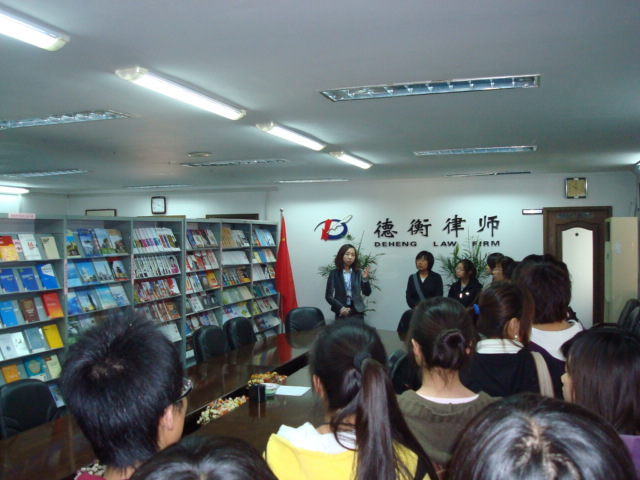 在山东德衡律师事务所,工作人员介绍了该所的历史、业务概况并参观了该所的办公环境。场所内工作秩序有条不紊,律师各司其职,通过发达的内部网络获取所需信息,高效而快捷。学生们观览了会客室、休息场所、图书馆藏等。