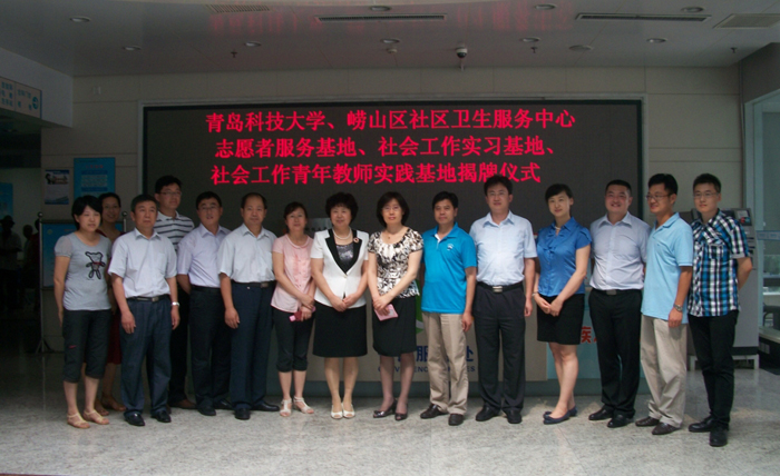 7月15日下午,青岛科技大学志愿者服务、社会工作实习、社会工作青年教师实践基地揭牌仪式在崂山区社区卫生服务中心举行。学校党委副书记王瑞芳、崂山区副区长于鹏共同为基地揭牌。校团委、9999js金沙老品牌和崂山区团委、崂山区卫生局相关负责同志、社区卫生服务中心职工代表和师生代表参加了活动。仪式由崂山区社区卫生服务中心主任蔡学民主持。