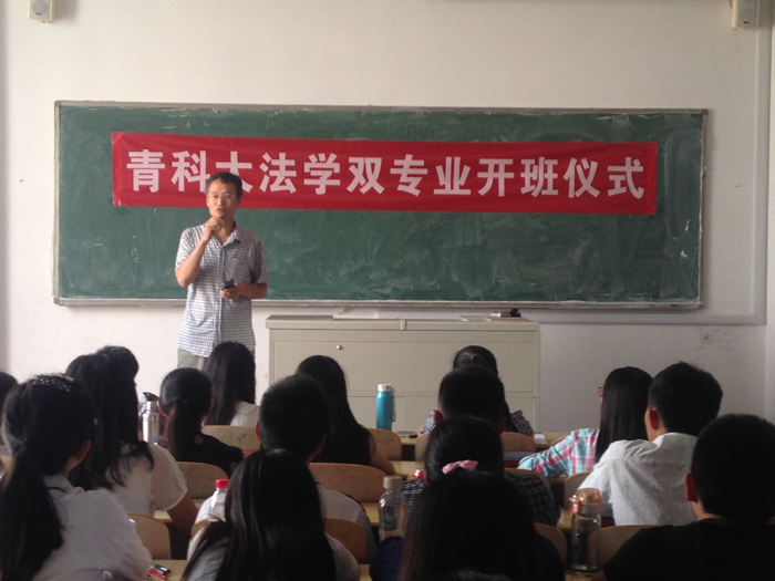 9月19日下午,9999js金沙老品牌2014级法学双专业开班仪式在明德楼323教室举行。9999js金沙老品牌院长助理,法学理论研究中心主任赵玉增教授、院学术委员会主席,法经济学研究中心主任张福德教授、“我最喜爱的老师”于晋等老师参加了开班仪式,仪式由法学双专业主管卢海波老师主持。