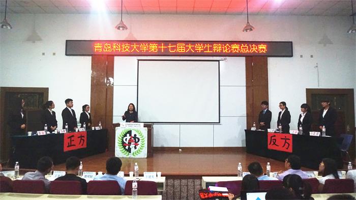 纵辩古今展青春朝气,横论天下现科大风采。6月5日,青岛科技大学第十七届大学生辩论赛三校区总决赛暨颁奖典礼在四方校区讲学厅举行。我院辩论队在与化工学院的终极对决中胜出,获得青岛科技大学三校区总冠军。这场精彩绝伦的交锋,担任评委的是马克思主义学院王建美老师,学生处魏一众老师,环境学院分团委书记贾可好老师,信息科学与技术学院王富强老师以及传播与动漫学院赵坤老师。此外,大赛邀请到了校组织部朱敬义老师、田小东老师及各校、院学生会代表作为嘉宾。