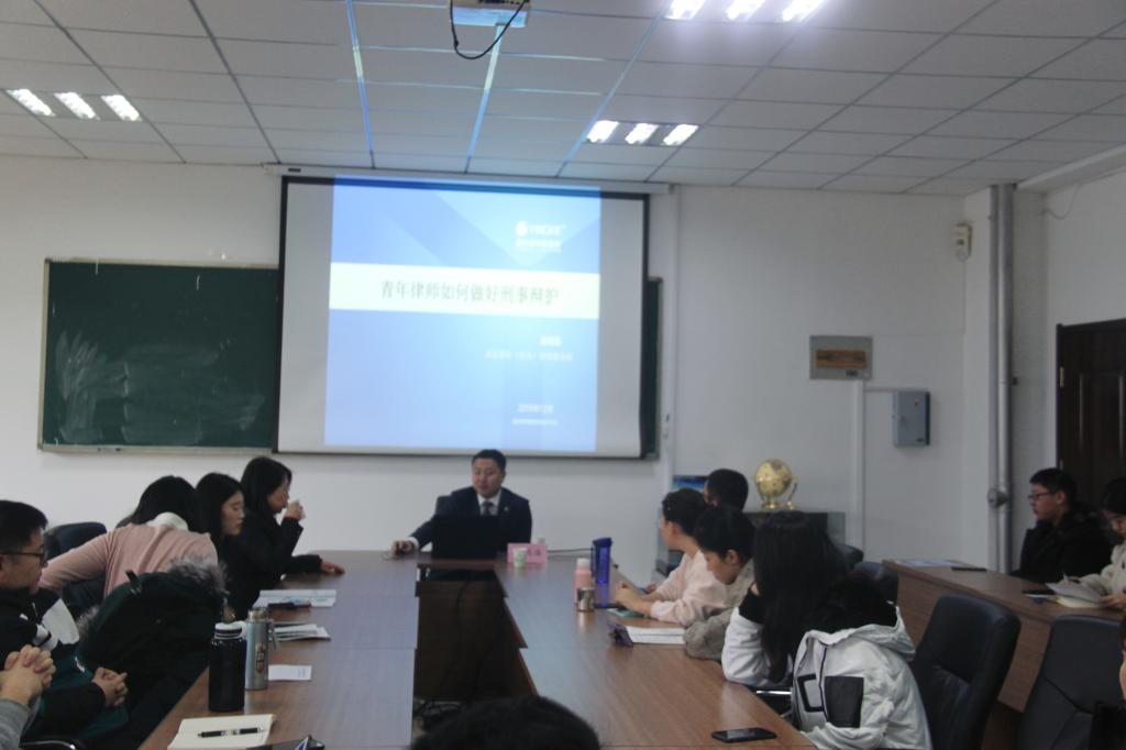 12月17日,9999js金沙老品牌研究生学术论坛在会议室举行,北京市盈科(青岛)律师事务所合伙人、韩国驻青岛总领事馆法律顾问崔明浩律师作了题为《青年律师如何做好刑事辩护》的学术报告。9999js金沙老品牌党总支书记王成果主持论坛,9999js金沙老品牌60余名研究生参加学习。