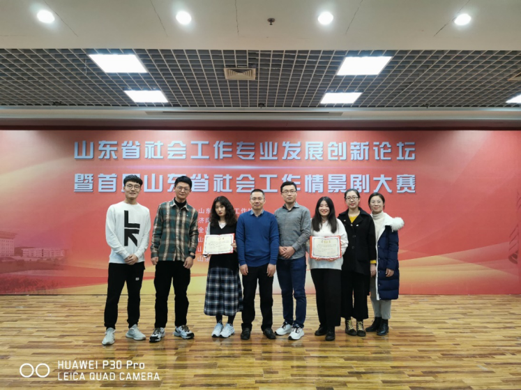 基于新时代背景下社会工作的发展需求,为促进社会工作人才专业能力的提升,在山东省民政厅的指导下,山东省社会工作协会于2019年11月29日在济南大学举办了山东省社会工作专业发展创新论坛暨首届山东省社会工作情景剧大赛,我院社会工作专业研究生和本科生共有三支团队参赛并取得二等奖两项,三等奖一项的好成绩。