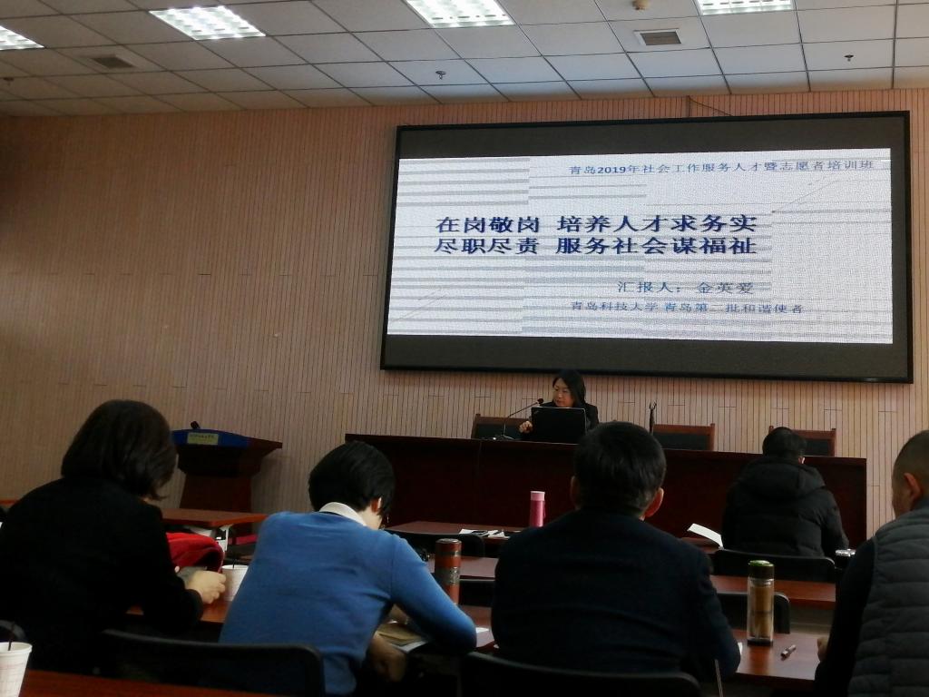 11月25-27日,青岛市2019年社会工作服务人才暨志愿者培训班在青岛市志愿服务学院举办,80余名第二、三届齐鲁和谐使者及青岛和谐使者,各区(市)优秀志愿者代表参与培训,9999js金沙老品牌社会工作系教师陈为智、金英爱、李亚妮三位老师参加此次培训活动。其中,第三届齐鲁和谐使者陈为智和第二届青岛和谐使者金英爱两位副教授分别以《守护初心,发展社工教育,做好社会服务》和《在岗敬岗培养人才求务实 尽职尽责服务社会谋福祉》为题,向大会做了经验交流与成果分享。