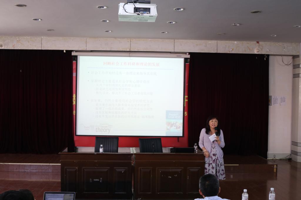 第一场讲座,由美国南加州大学社会工作学院齐铱教授做《社会工作的循证研究与实践教学的整合》专题报告。齐铱教授首先向大家介绍了自己的求学经历和求学过程中的感悟,使同学们对社会工作有了一个新的认识。其次,齐教授探讨了如何评估社会工作成效、如何开展儿童家暴社会工作、老年健康等实务问题,希望广大同学注重社会工作方法的学习。还探讨了目前社会工作面临的挑战,以及如何应对这些挑战与风险。再次,齐教授通俗地解释了什么是社会工作循证实践。她指出社会工作循证实践不是千篇一律社会工作实践的方法,是一个涉及批判性思考和信息评估的过程,以确定为接受帮助的人、家庭、社区以及社会提供的有效政策、项目和最有效的治疗,并探讨了证据为基础实践的模型。最后齐教授介绍了她主持建立的中国儿童与老年健康证据转化平台情况,并提出了利用平台对社会工作教学和研究的新思路。