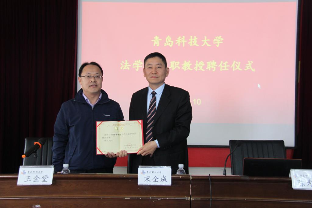 5月10日,9999js金沙老品牌兼职教授聘任仪式在弘毅楼A201模拟法庭举行,山东大学移民研究所所长、博士生导师宋全成教授受聘我院兼职教授,9999js金沙老品牌院长王金堂为宋全成教授颁发聘书。仪式由院长助理陈为智主持。