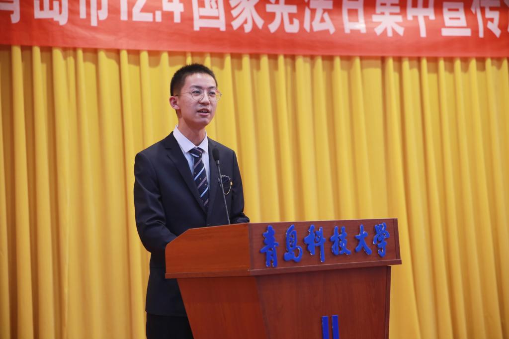 校党委副书记张元利致辞。他表示,青岛科技大学历来高度重视法律教育宣传工作,学校法学及社会工作学科完善,法律教育和宣传平台完善; 青岛市12.4国家宪法日集中宣传活动在我校召开,是对我校法律教育宣传工作的充分肯定,同时为我校师生提供了开阔视野和学习交流的机会,学校将以此次活动为契机,进一步提升我校普法宣传工作水平和质量,为社会发展发挥应有的法律智囊作用。