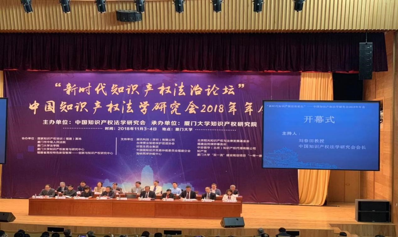 11月3日至4日,由中国知识产权法学研究会主办,厦门大学知识产权研究院承办的“新时代知识产权法治论坛”暨中国知识产权法学研究会2018年年会在厦门大学科学艺术中心隆重召开。共有5个分会场就“著作权法修订中的问题研究、互联网不正当竞争法律问题研究、商标法理论与实务问题研究、专利法修订中的问题研究、体育产业中的知识产权问题研究、国际知识产权问题研究、知识产权仲裁及多元化纠纷解决机制研究、商业秘密保护问题研究、生物科技医药与知识产权保护问题研究、新技术变革与知识产权问题研究”等多个专题展开广泛研讨。
