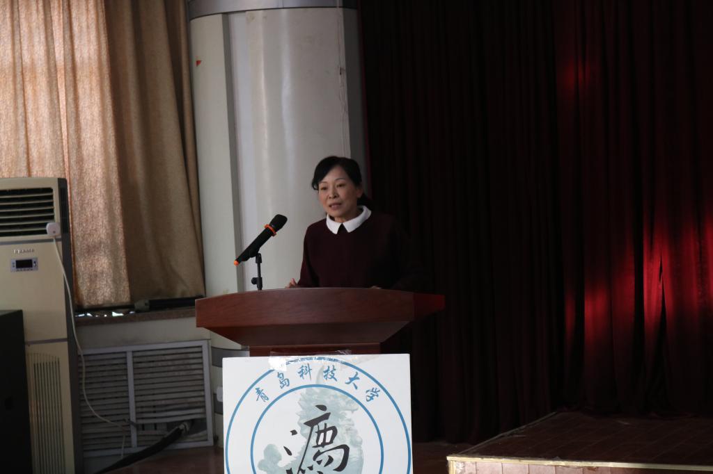 优秀本科生导师代表曲天明老师发言。曲老师在发言中表达了广大导师对同学们的殷切期望。她表示希望能在一个和谐的师生关系中与同学们共同学习、共同进步,以更好的精神风貌迎接新的挑战。