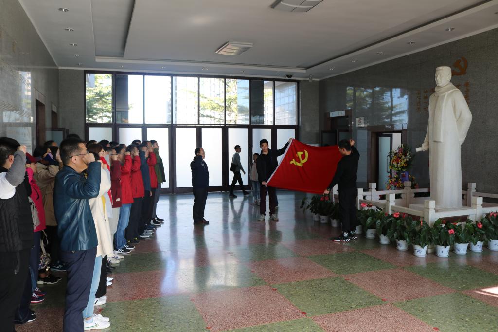 参观开始之前,师生党员们在党总支副书记、院长王金堂的带领下,面向王尽美烈士塑像,进行了庄严的重温入党誓词活动。