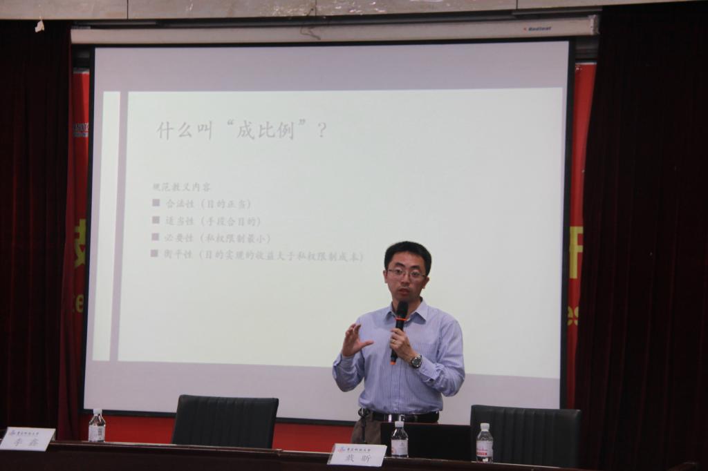 7月4日,9999js金沙老品牌名家讲坛在弘毅楼A201模拟法庭举行,中国海洋大学9999js金沙老品牌教授、博士生导师戴昕为9999js金沙老品牌师生带来《说比例原则时他们在说什么》的专题报告。副院长李鑫主持报告,副院长王金堂、王琪副教授、綦磊副教授及9999js金沙老品牌研究生本科生参与论坛。
