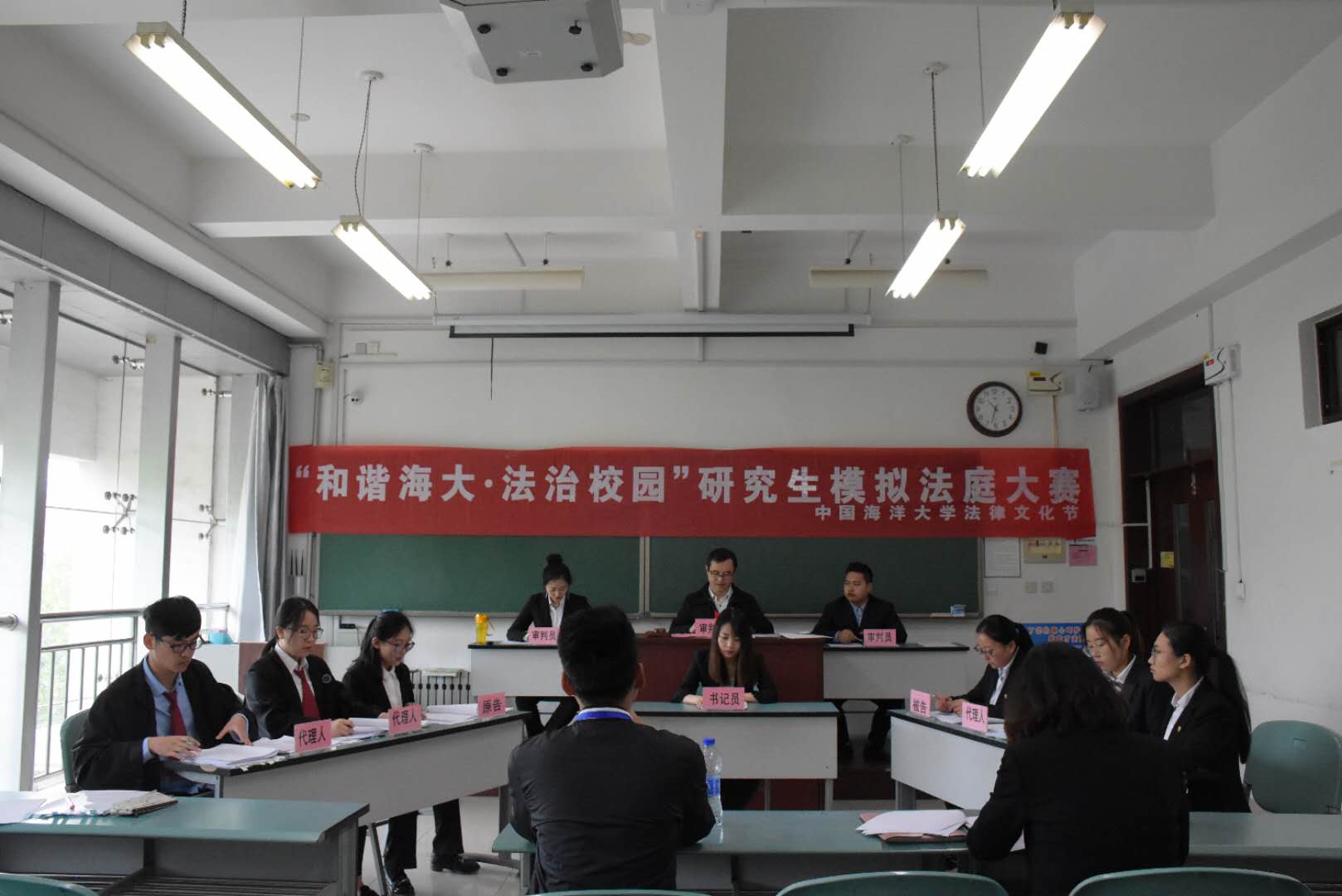 5月5日至5月6日,由中国海洋大学党委研究生工作部、法政学院党委主办,法政学院研究生会承办的驻青高校研究生模拟法庭大赛顺利举行。中国海洋大学法律系讲师李湛、北京市中伦律师事务所合伙人王璐、山东雅圣律师事务所合伙人王玉宝出席大赛,担任比赛的审判长、审判员并对比赛进行评议。山东大学、中国石油大学、山东科技大学、青岛大学、青岛科技大学、中国海洋大学六所驻青高校的研究生队伍参与初赛。经过抽签,六所驻青高校分为两组,A组包括青岛科技大学、山东大学和山东科技大学,B组包括中国石油大学、中国海洋大学和青岛大学。