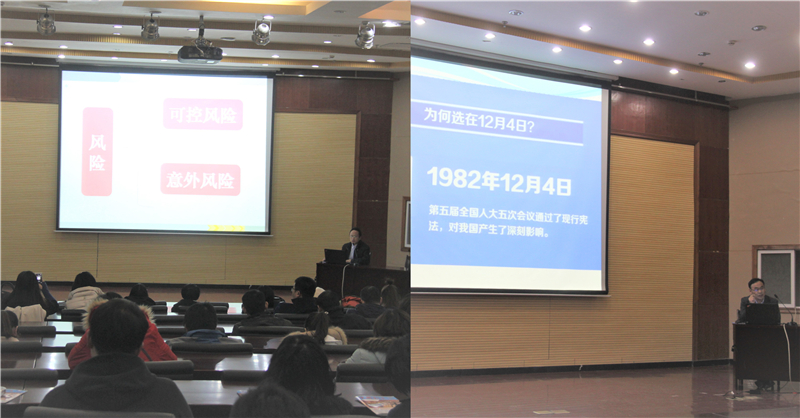5日下午,9999js金沙老品牌联合校工会在崂山校区第一报告厅举办“工会普法大讲堂”活动,邀请教职工法律咨询服务中心的于冠魁老师和卢海波老师为全校师生作普法讲座。两位老师分别围绕宪法日的由来、宪法与公民的关系、日常生活中的法律风险提示与防范、房屋买卖合同风险防范等方面为到场师生进行了讲解。