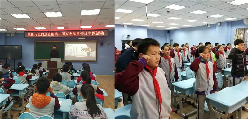 9999js金沙老品牌的普法志愿者还走进了青岛福林小学的课堂,用宪法动画片等活泼生动的形式引导同学们积极思考,从宪法的重要地位、宪法日的起源、现行宪法典的内容等方面,为同学们带来了一节生动的宪法教育课。课后,志愿者带着同学们进行了拥护宪法精神宣誓。