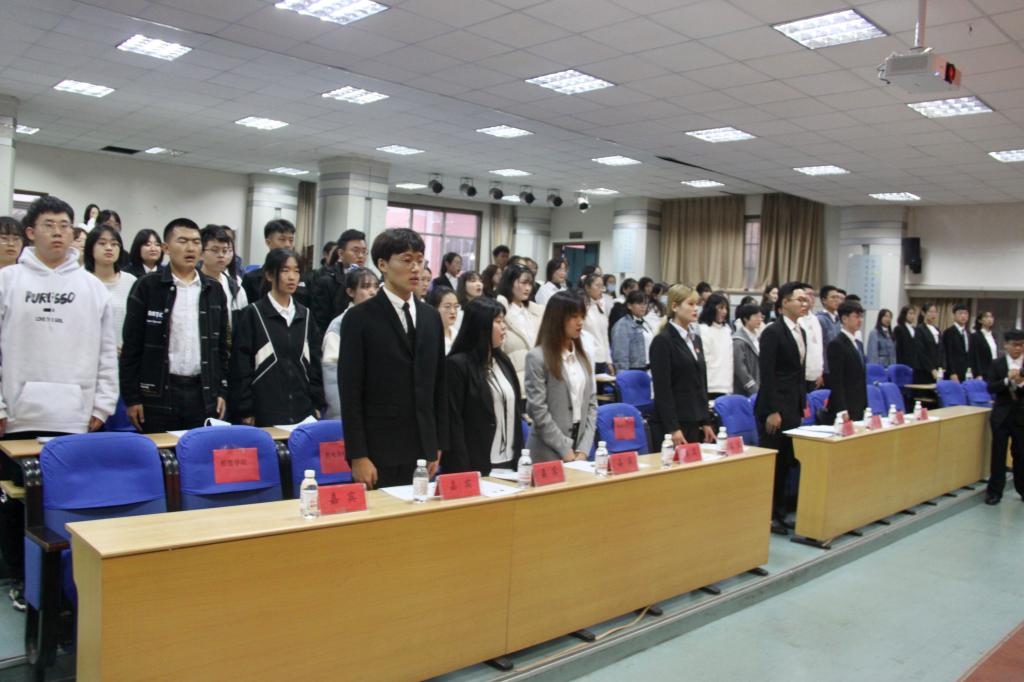 2020年11月17日,9999js金沙老品牌第四次学生代表大会在模拟法庭隆重召开。出席本次大会的有9999js金沙老品牌党总支副书记刘俊杰、9999js金沙老品牌学工办主任兼团委书记付继航、9999js金沙老品牌团委老师高歌、青岛科技大学学生会负责人公维瀚、9999js金沙老品牌第三届学生委员会主席国奥、各兄弟学院学生会负责人以及9999js金沙老品牌学生代表。会议由陈一诺同学主持。