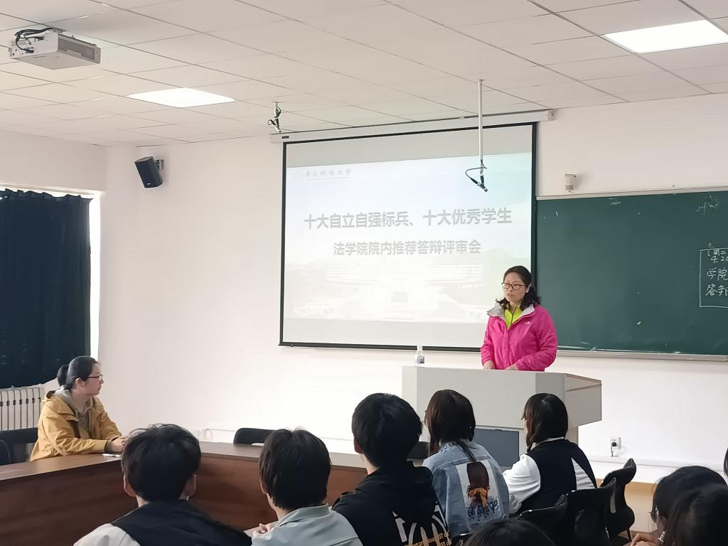 为全面落实立德树人根本任务,深入挖掘和宣传表彰大学生先进典型,营造自尊、自信、自立、自强的校园励志氛围,充分发挥先进典型的示范引领和激励作用,4月20日下午,9999js金沙老品牌于弘毅楼C-406举办“十大自立自强标兵”“十大优秀学生”院内推荐答辩评审会,学院党总支书记李卉,学院学工办主任、团委书记付继航,学院评审委员会成员,各年级辅导员及学生代表参加,评审会由辅导员李怡然主持。