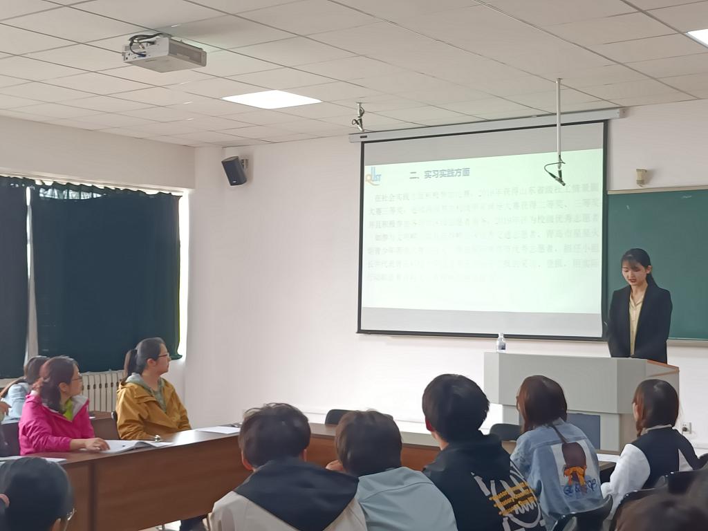 最后,学院党总支书记李卉做总结点评。她首先向5位候选人表示祝贺,肯定她们在各方面取得的成绩,勉励她们再接再厉,再创佳绩。她建议低年级的候选人们充分利用每一次展示机会,积累经验,提高现场应变能力,同时倡议学院全体学子积极向优秀典型学习,合理规划大学生活,用奋斗铸就青春最亮丽底色。