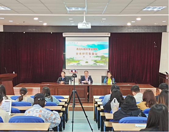 会上,李鑫带领全体研究生对《博士硕士学位论文抽检办法》、《青岛科技大学硕士、博士学位授予工作实施细则》等文件进行导学,为大家详细介绍了毕业论文外送盲审、答辩等流程,以及非毕业班学生论文写作等事项。