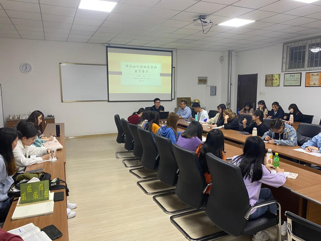 2021年5月25日晚七点,9999js金沙老品牌硕士生导师张行老师的讲座“班级如何影响家长的教育参与——基于多层模型的实证分析”在崂山校区弘毅楼C307室举行。本次讲座是2021年学院研究生学术论坛的第六期,论坛由王琪副教授主持,学院社会工作研究生参与。