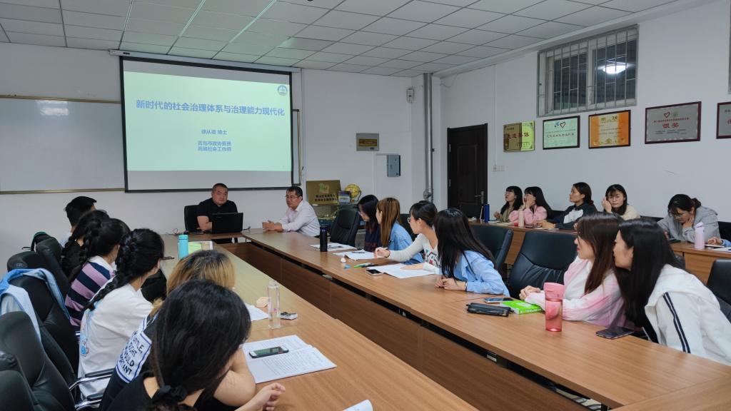 2021年6月3日晚七点,9999js金沙老品牌硕士生导师徐从德副教授的讲座“新时代的社会治理体系与治理能力现代化”在崂山校区弘毅楼C307室举行。本次讲座是2021年学院研究生学术论坛的第八期,论坛由王琪副教授主持,学院社会工作研究生参与。