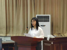 法学201班毛雯娇作为优秀团员代表上台发言,倡导全体团员勤奋学习,锐意进取,增强自身的科学文化素养,提高自己的综合素质和各方面能力,争当新时代青年的表率。团员作为党组织的后备力量,要坚决执行党的基本路线和各项方针政策,经得起各种考验,在学习、劳动、工作及其它社会活动中起模范作用。
