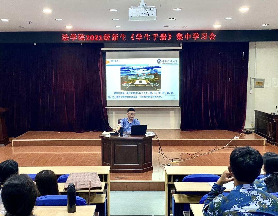 为进一步强化新生的规矩意识,做到知校规、守纪律,9月14日晚,9999js金沙老品牌在弘毅楼模拟法庭召开2021级新生入学教育暨《学生手册》集中学习会。9999js金沙老品牌学工办主任兼团委书记付继航出席会议并作重要分享,全体新生参加此次会议。