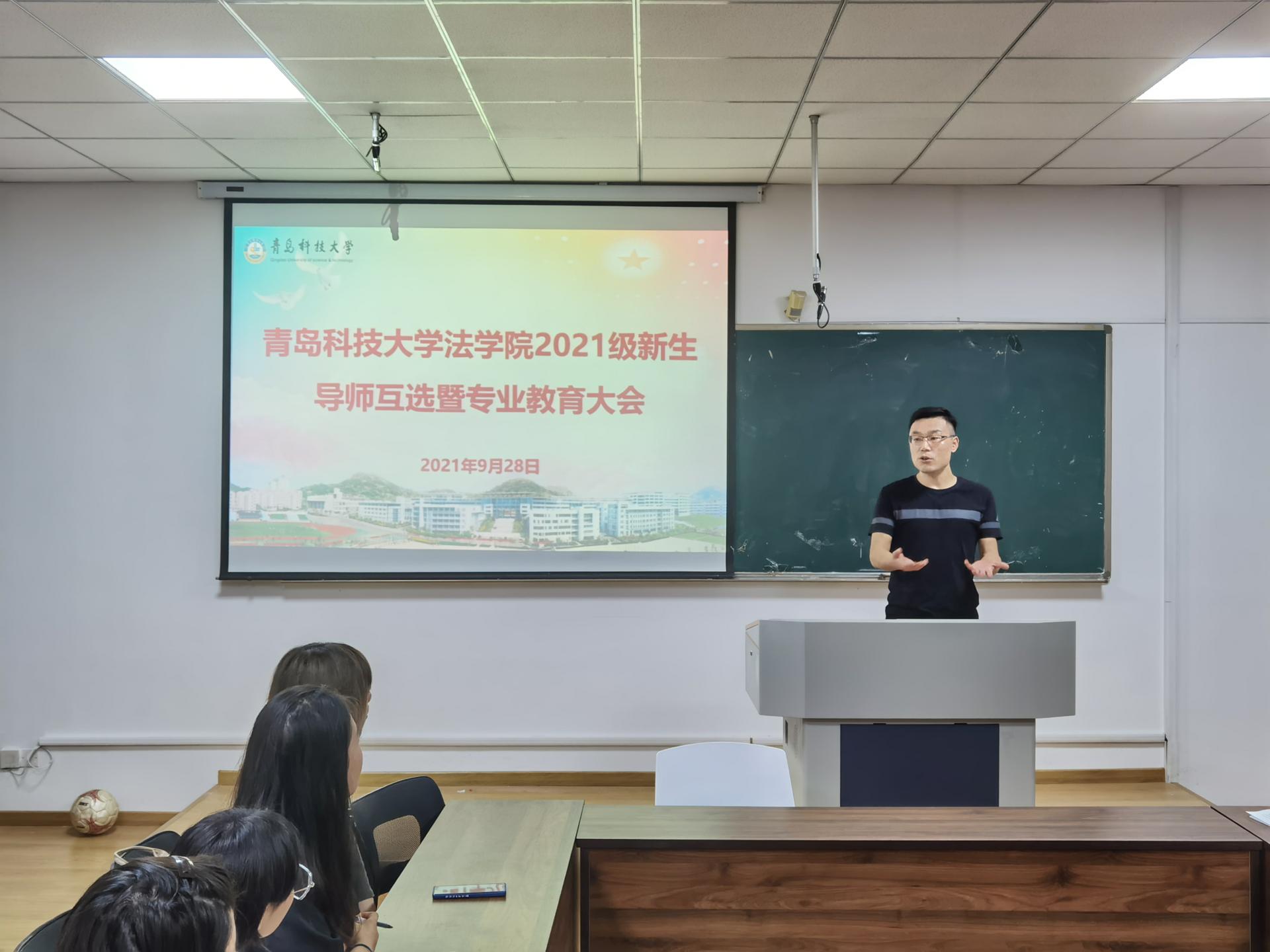 9月28日下午,9999js金沙老品牌2021级新生导师互选暨专业教育大会分专业在模拟法庭和党员活动室举行。党总支书记李卉,学院办公室、团委、专业系主任,本科新生导师出席会议。