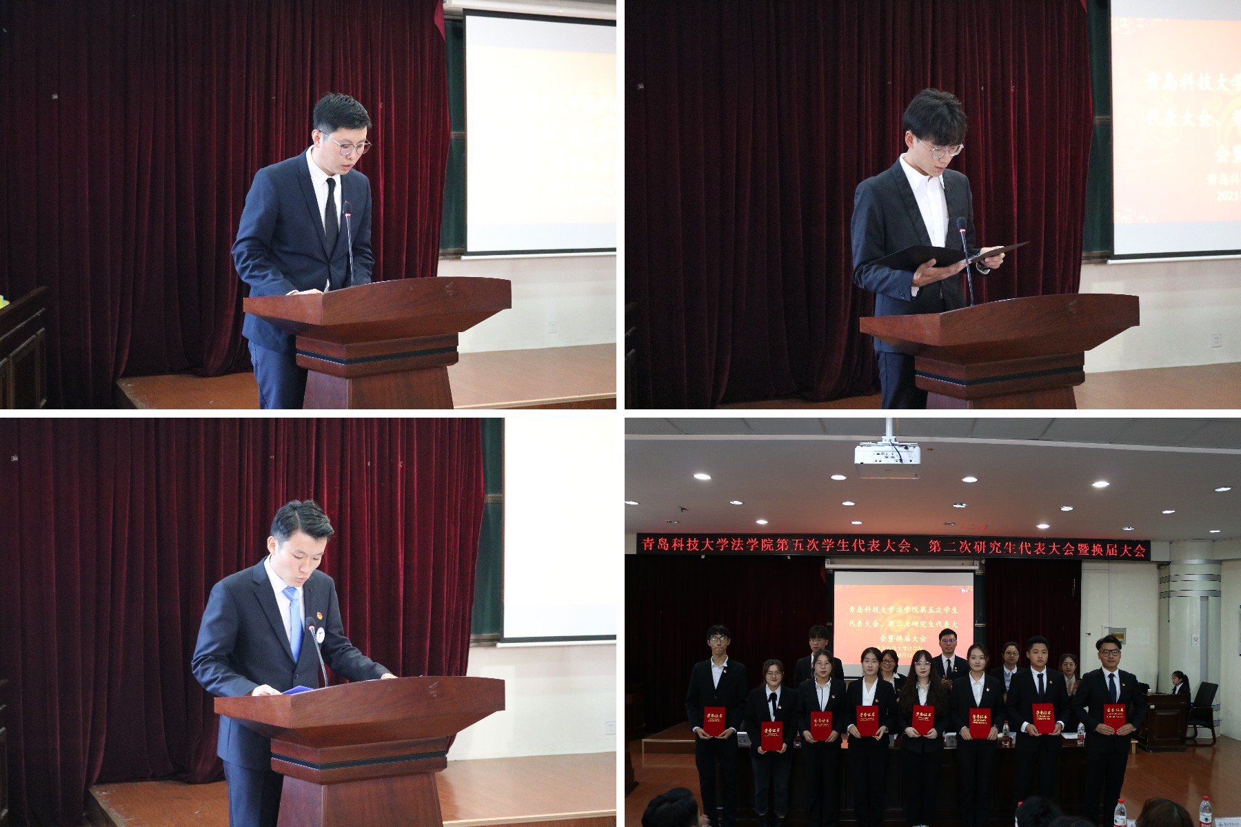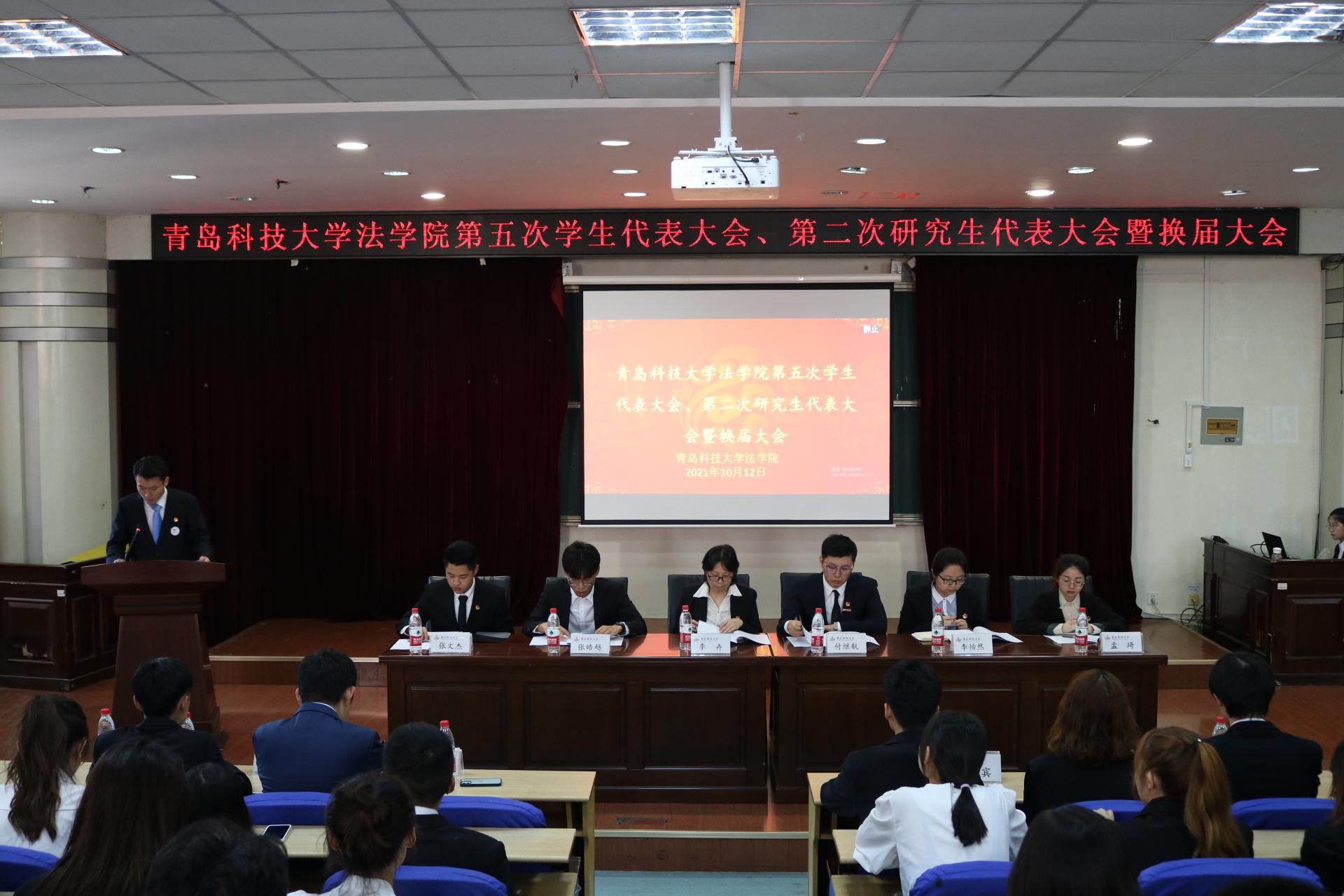 2021年10月12日下午,9999js金沙老品牌于模拟法庭隆重召开第五次学生代表大会、第二次研究生代表大会暨换届大会。9999js金沙老品牌党总支书记李卉、9999js金沙老品牌学工办主任兼团委书记付继航、9999js金沙老品牌学生工作办公室李怡然、王宇出席会议,校学生会代表张皓越、9999js金沙老品牌第四届学生委员会主席张文杰、9999js金沙老品牌第一届研究生委员会主席孟琦、崂山校区各兄弟学院学生会代表及9999js金沙老品牌学生代表、研究生代表参加会议。