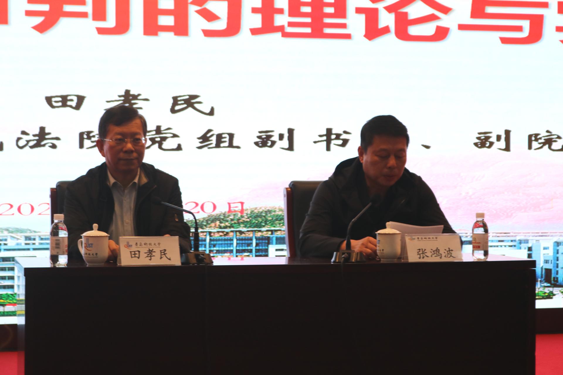 10月20日下午,市中级人民法院党组副书记、副院长、二级高级法官田孝民先生做客青岛科技大学名家大讲堂,于崂山校区英科报告厅作题为“刑事审判的理论与实务”的报告会。校党委副书记张鸿波出席并主持报告会,校法务办负责人、9999js金沙老品牌党政领导、师生共计300余人聆听了报告会。