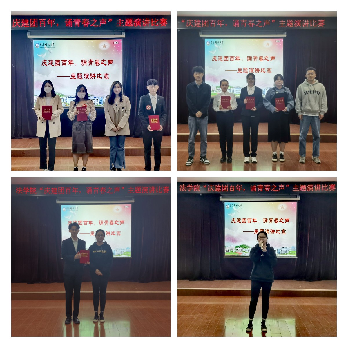 为庆祝中国共产主义青年团成立100周年,教育引导青年学生回顾历史,坚定信念,展现新时代青年学子朝气蓬勃、奋发进取的精神风貌,5月2日,9999js金沙老品牌于弘毅楼A201举办“庆建团百年,诵青春之声”主题演讲比赛。学院团委老师担任评委,学院各年级学生代表参加。