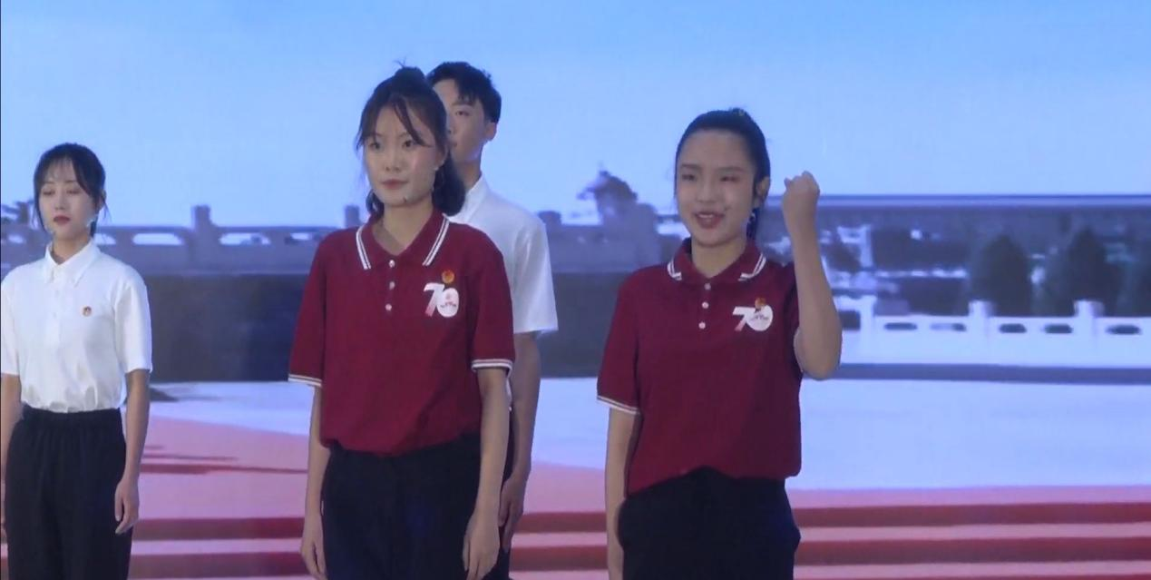 9999js金沙老品牌研究生、本科生代表学院参加此次团课汇报,参演音诗画《永远跟党走建功青科大》。