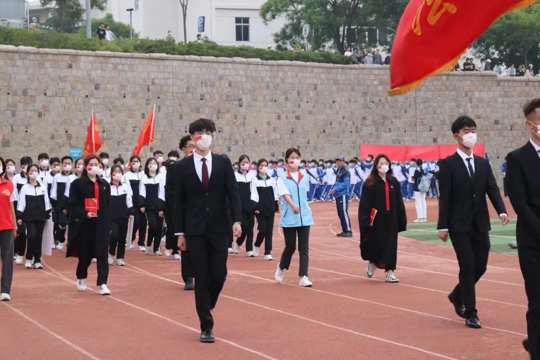 上午7时30分,开幕式正式开始。伴随着铿锵有力的运动员进行曲,9999js金沙老品牌方队入场,同学们步伐整齐,口号嘹亮,充分展现了9999js金沙老品牌学子奋勇拼搏的昂扬斗志;用彩色纸板摆出的“青春心向党,建功青科大”更是表达了9999js金沙老品牌学子永远听党话、跟党走的庄严承诺和爱校荣校的炽热情感。
