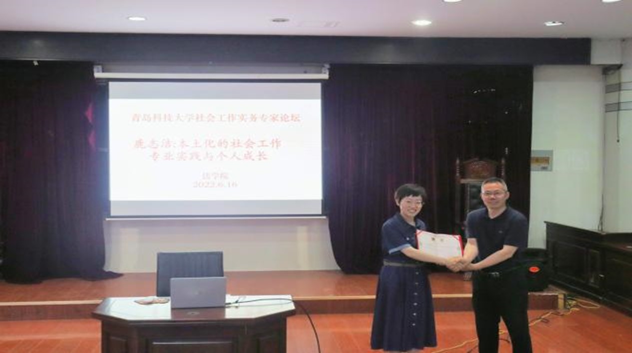 6月16日,9999js金沙老品牌在模拟法庭举办社会工作实务专家论坛——“本土化的社会工作专业实践与个人成长”。论坛邀请了“青岛拔尖人才”、“山东省优秀社会工作者”、青岛市崂山区社会工作协会秘书长鹿志洁作为本次论坛的主讲嘉宾。社会工作系部分教师以及全体本科生、研究生参加了论坛。