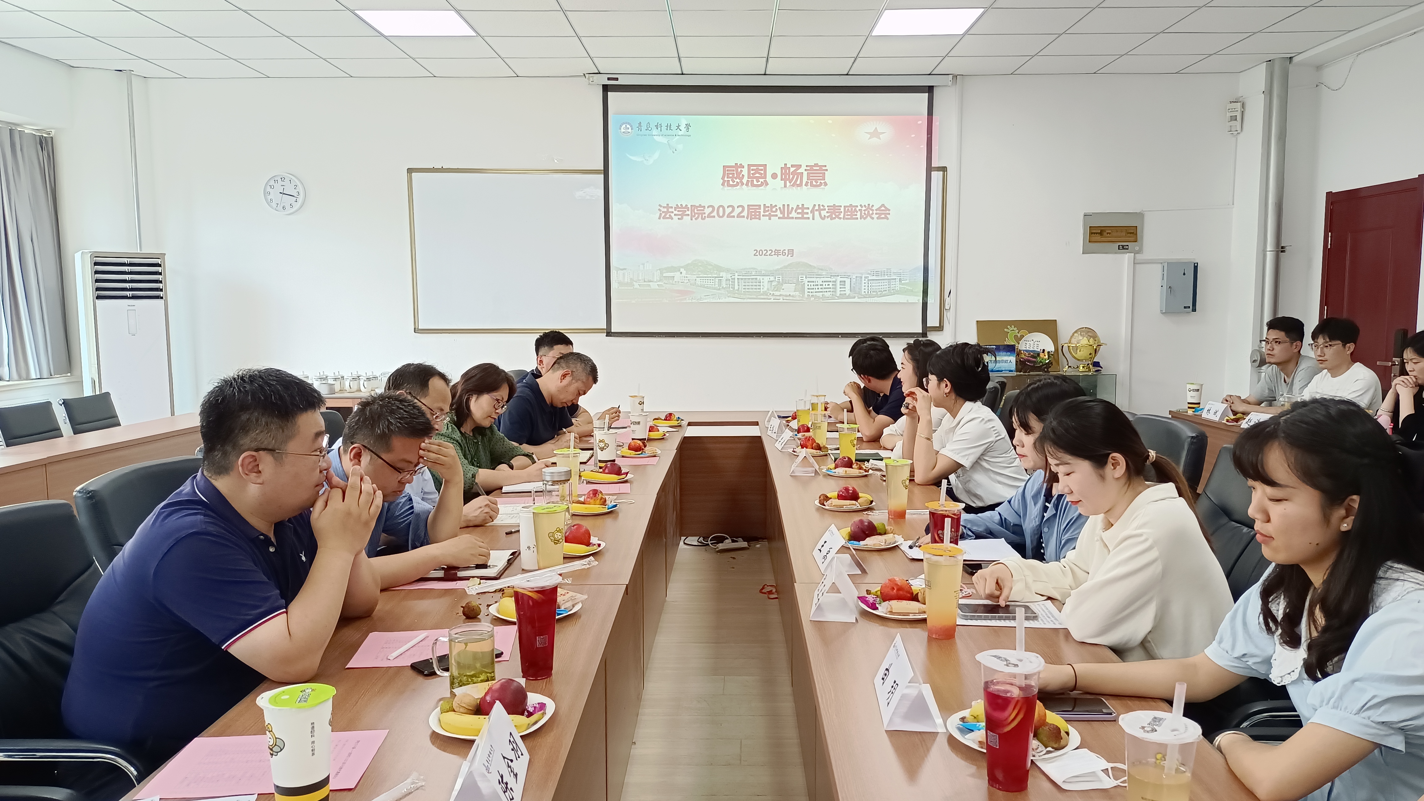 【心怀感恩,共话成长】为上好2022届毕业生“最后一堂思政课”,助推学院高质量发展,6月17日下午,9999js金沙老品牌在弘毅楼c区307会议室召开2022届毕业生代表座谈会。毕业生代表们分享了校园生活的难忘回忆,交流了在校期间的学习成果、收获感悟,谈到了对未来工作、生活的期待,表达了对老师们的感谢以及对母校的眷恋之情,并对学院未来发展提出了自己的意见建议。学院领导老师认真听取了同学们的发言,结合自身的求学、求职、初入职场等经历和感受,为学生梳理思路、加油打气,并希望同学们在工作中长才干、练本领,做无愧于时代、无愧于人民、无愧于历史的时代新人。