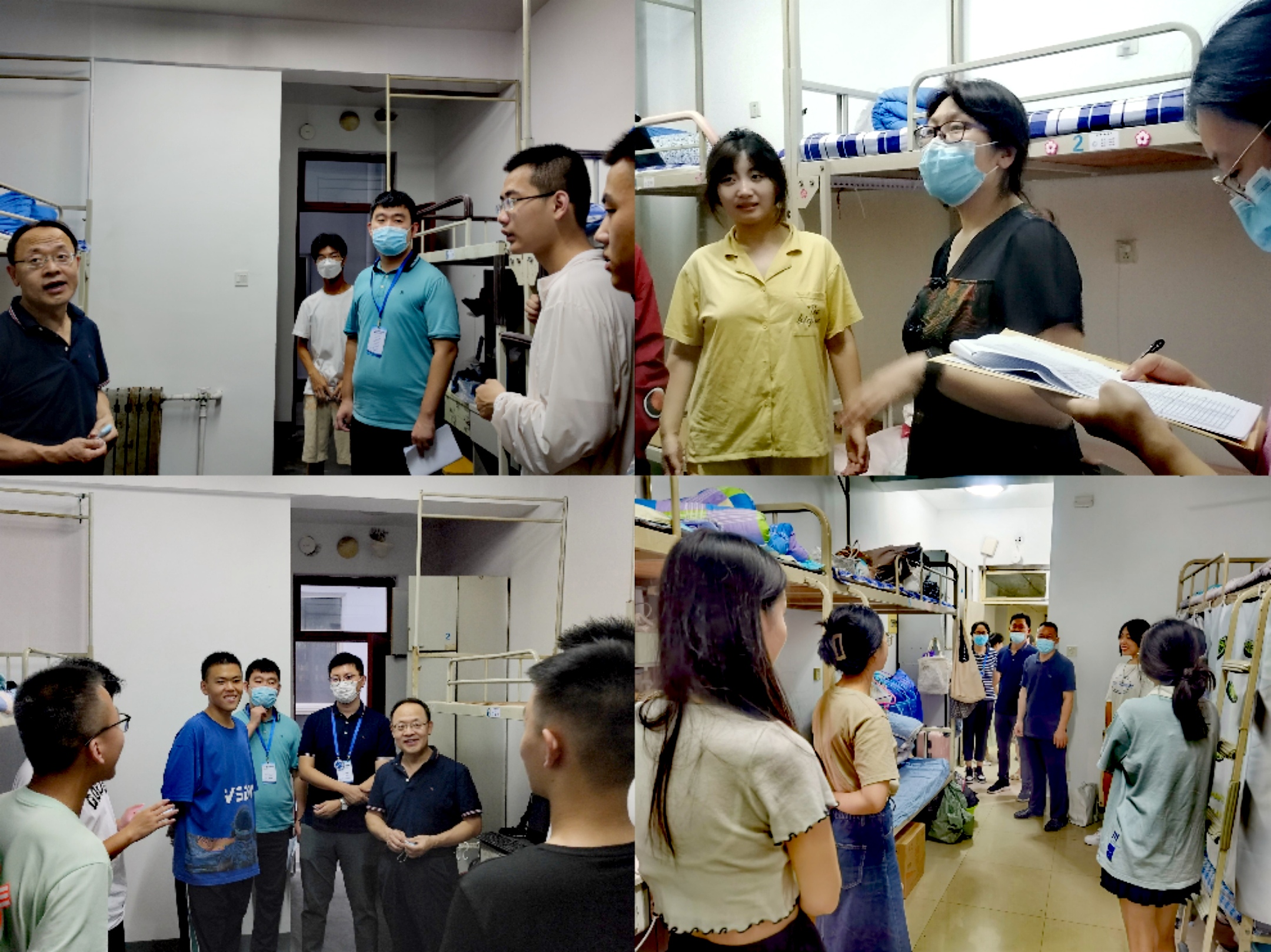 走访宿舍话相逢,关怀备至传真情。9月3日晚,学院领导、系主任和学生工作办公室全体辅导员走访了新生宿舍,向新生的到来表示欢迎,关心慰问新生入校后的住宿和生活保障情况,认真听取学生各方面的意见和建议,叮嘱新生要提高疫情防控意识,注重个人防护和宿舍环境卫生,鼓励新生尽快融入大学生活,合理安排时间,以饱满的热情投入到新学期的学习、生活中去,用实际行动向党的二十大献礼。