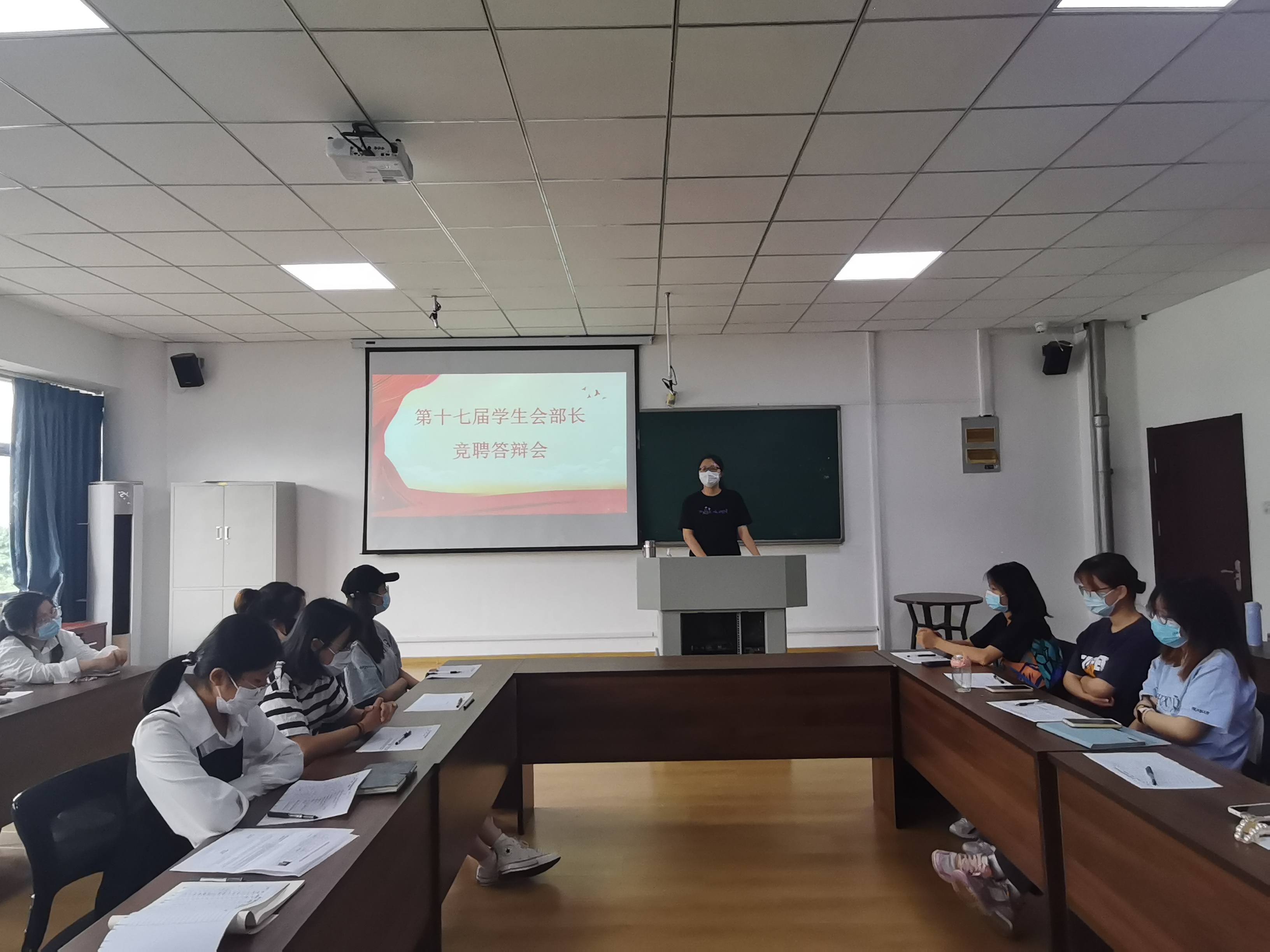 为进一步加强学院学生干部队伍建设,提高9999js金沙老品牌学生会自我服务、自我教育、自我管理、自我监督的能力,更好地为同学们服务,9月13日下午,9999js金沙老品牌学生会于弘毅楼C406举行了第十七届学生会部长竞聘答辩会。9999js金沙老品牌团委书记付继航,9999js金沙老品牌学生会秘书长、指导教师李怡然,辅导员王宇、王梦珂及第十六届学生会主席团和部长团出席了本次答辩会。