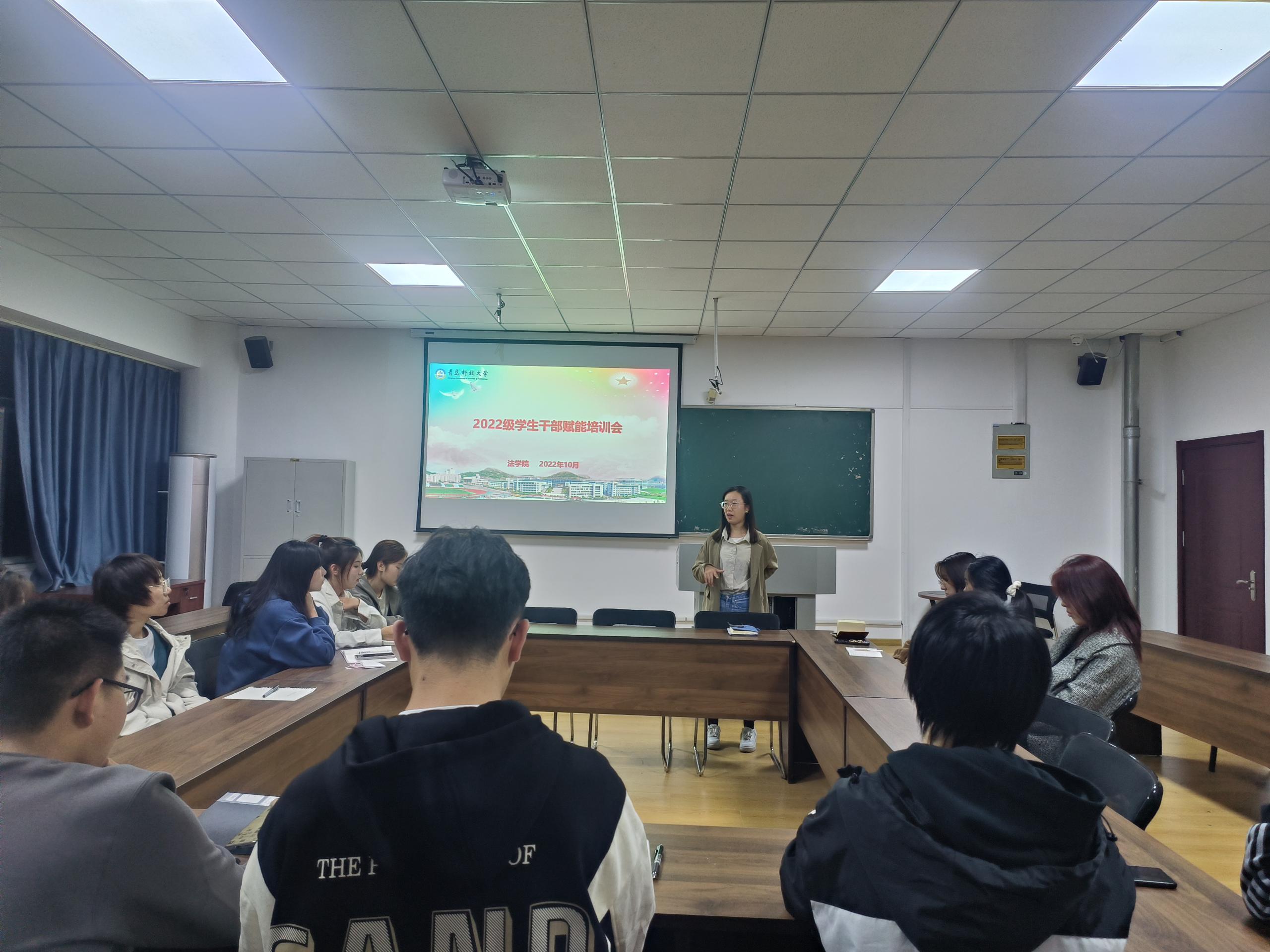 为进一步加强学生干部队伍建设,提高学生干部的整体素质,明确新任学生干部的工作任务、工作职责和工作要求,10月6日晚,9999js金沙老品牌在弘毅楼C406召开2022级全体新任学生干部赋能培训会。