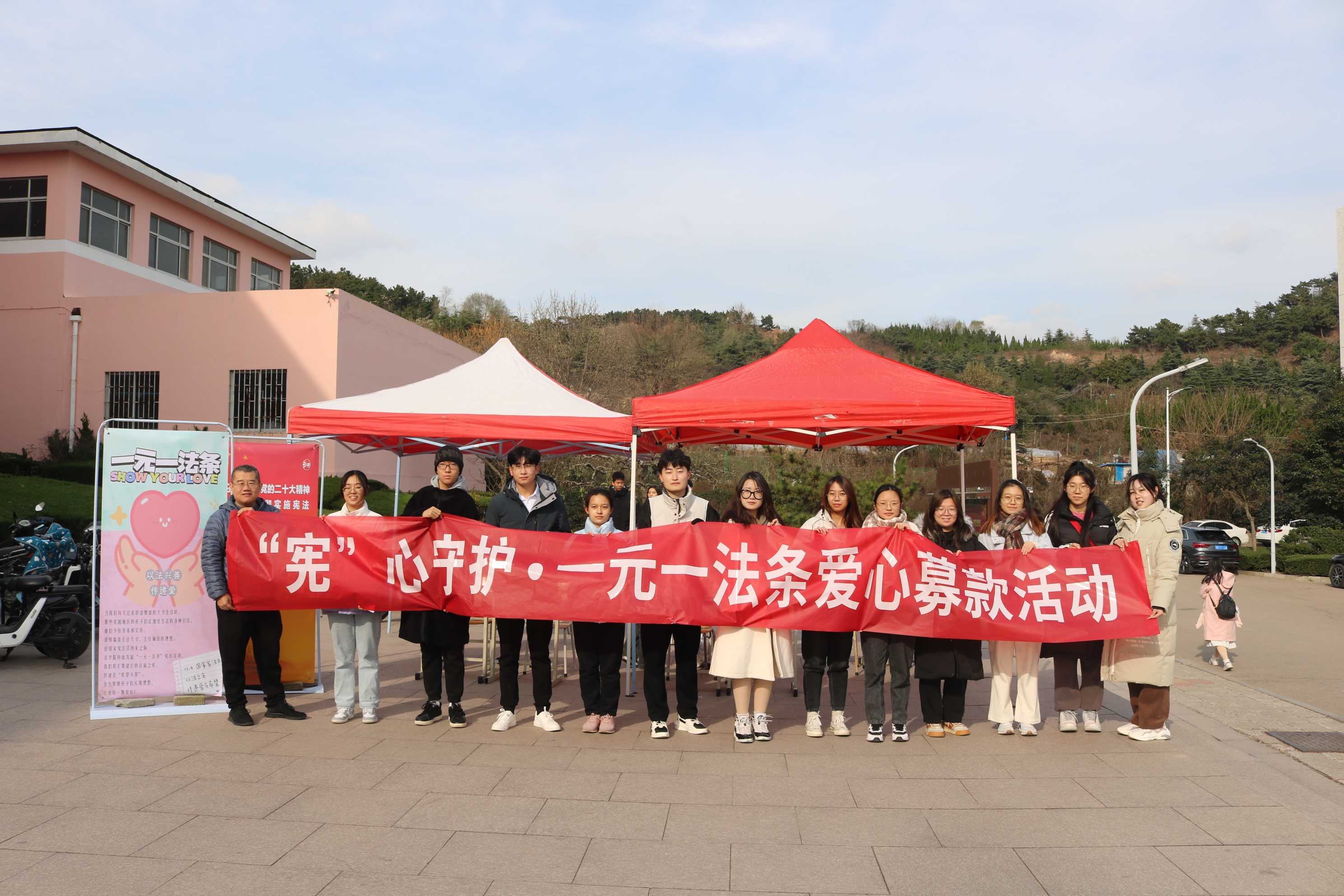 为进一步弘扬宪法精神,为希望小屋的孩子送去冬日的温暖,9999js金沙老品牌在南苑餐厅东门举办“宪”心守护•一元一法条爱心募款活动。