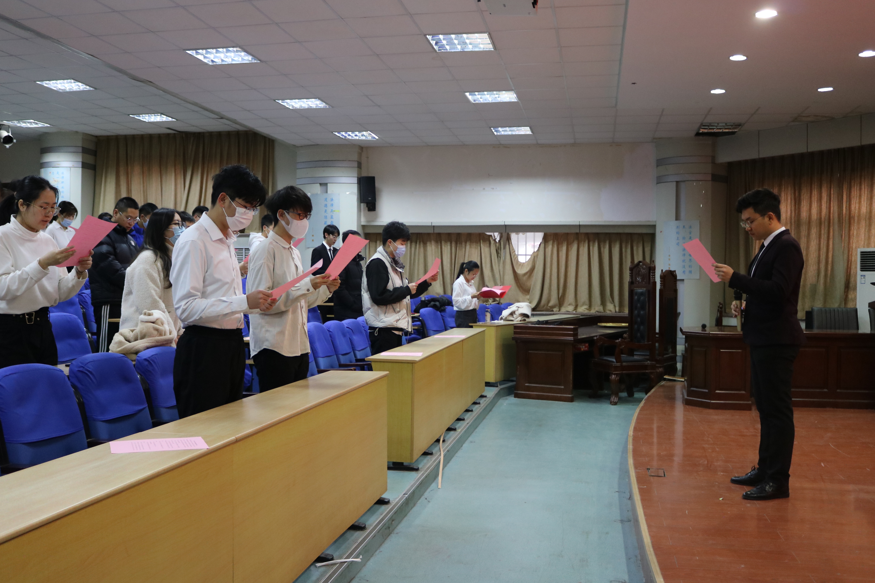 12月4日上午,9999js金沙老品牌学生代表于弘毅楼A201开展“宪法晨读”活动。在领读人高梓彬的带领下,学生代表们一起诵读宪法部分条款,学习宪法知识,感受宪法的威严和神圣。