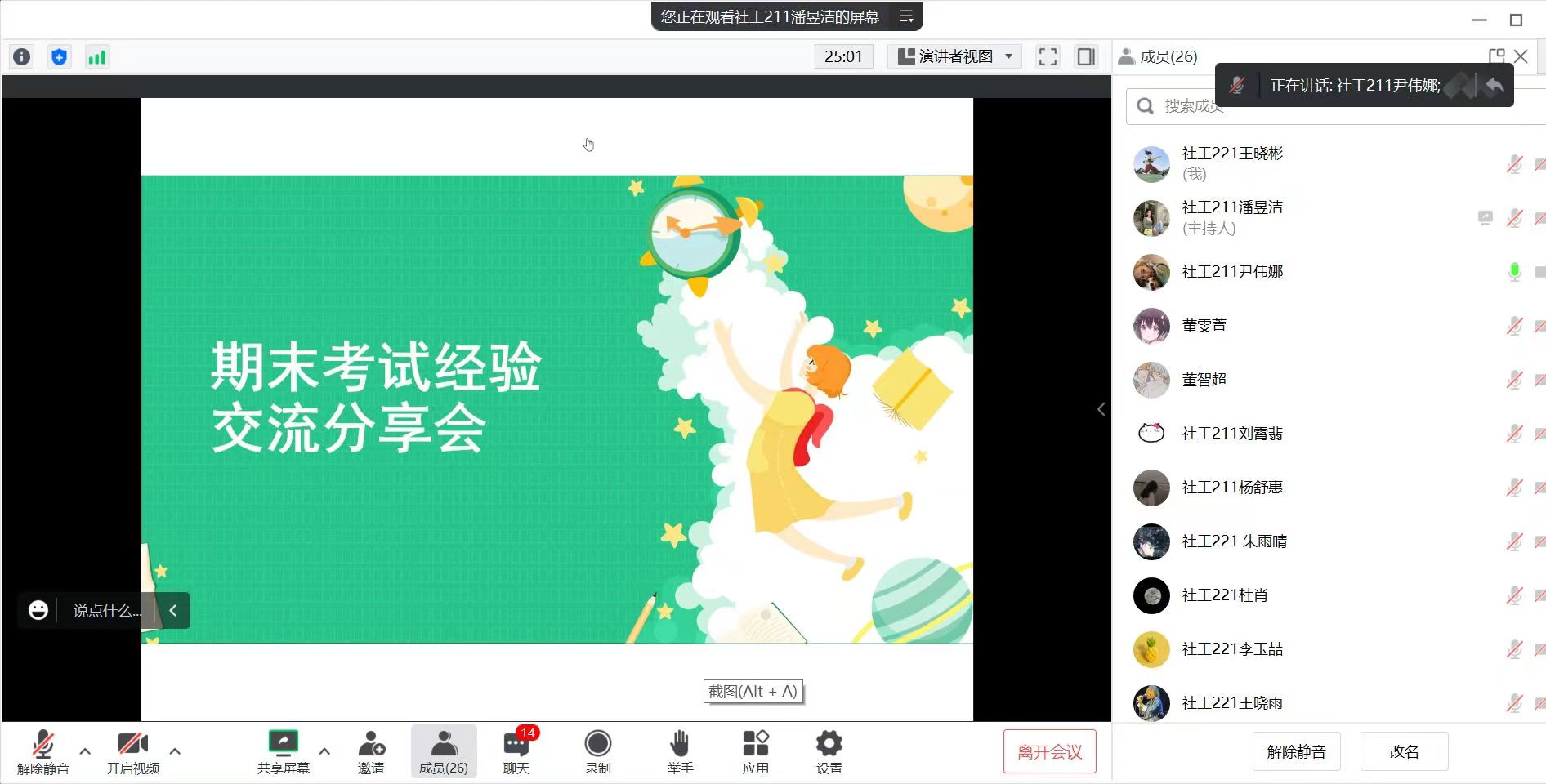 为帮助大一学生梳理知识脉络,理清复习重难点,提高复习效率,以最佳状态迎接大学期间第一次期末考试的到来,9999js金沙老品牌团委、学院学生会近期线上组织召开了期末考试经验分享交流会,会上邀请了法学和社会工作专业大二年级优秀学生代表分享了各自的考试复习经验和方法。