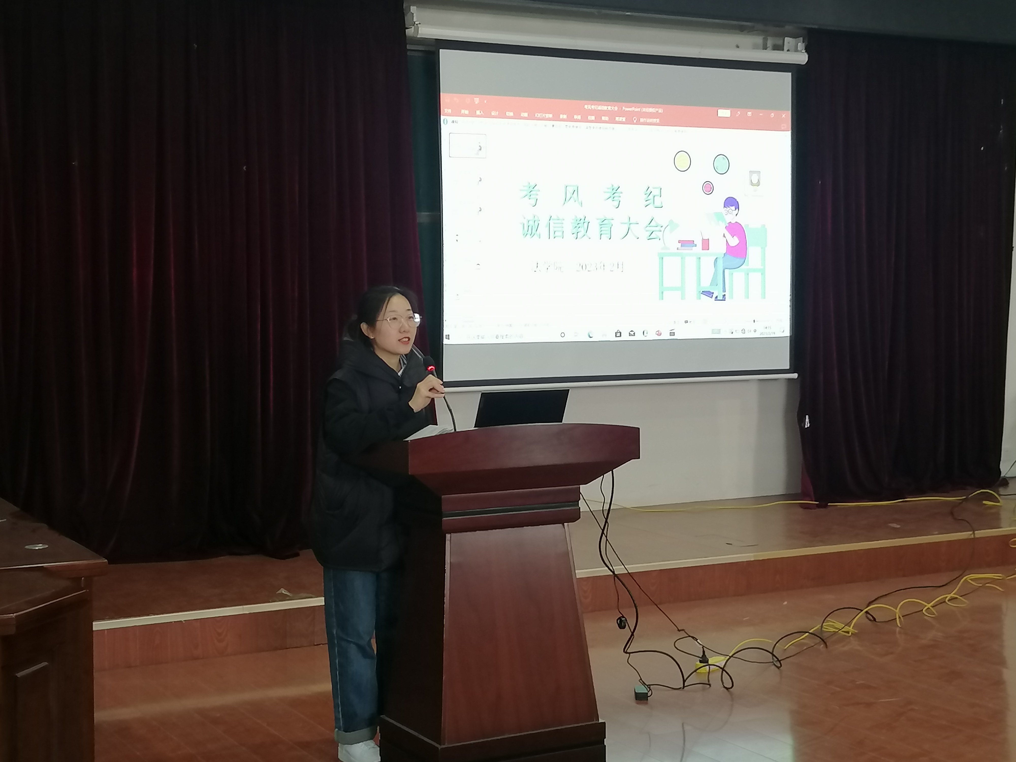 2月19日,辅导员王梦珂面向全体22级同学开展考风考纪诚信教育。她主要围绕期末考试复习准备、考试心态、考风考纪的严肃性、考试作弊违纪处分教育等方面展开。她带领全体同学集体学习《青岛科技大学学生纪律处分管理规定(修订)》、《青岛科技大学考风考纪警示教育》宣传片,用典型案例做好警示教育作用,推动学生诚信意识入脑入心,引导学生积极备考、认真全面复习,坚持诚信考试,诚信做人。