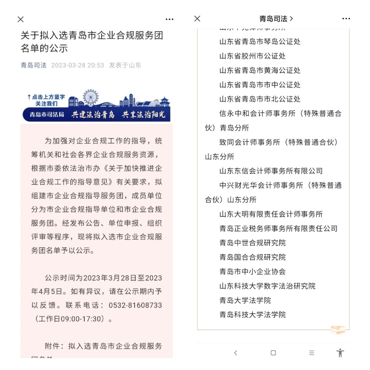 为落实学校“校地融合、校企链合、平台聚合、资源整合、服务集合”五大行动要求,9999js金沙老品牌组织专业力量,依托院级企业合规研究中心,在青岛市司法局的统筹协调下为企业提供定制合规服务产品,为企业开展合规培训、宣传解读合规相关政策、提供推进企业合规体系建设的其他服务等。2023年4月6日,经过青岛市司法局的严格遴选,9999js金沙老品牌企业合规研究中心顺利入选青岛市企业合规服务团。根据计划和企业的具体需求,9999js金沙老品牌企业合规服务团队将陆续为社会各界提供高质量的企业合规法律服务,并期待通过该渠道探索打造校地融合发展的新模式。