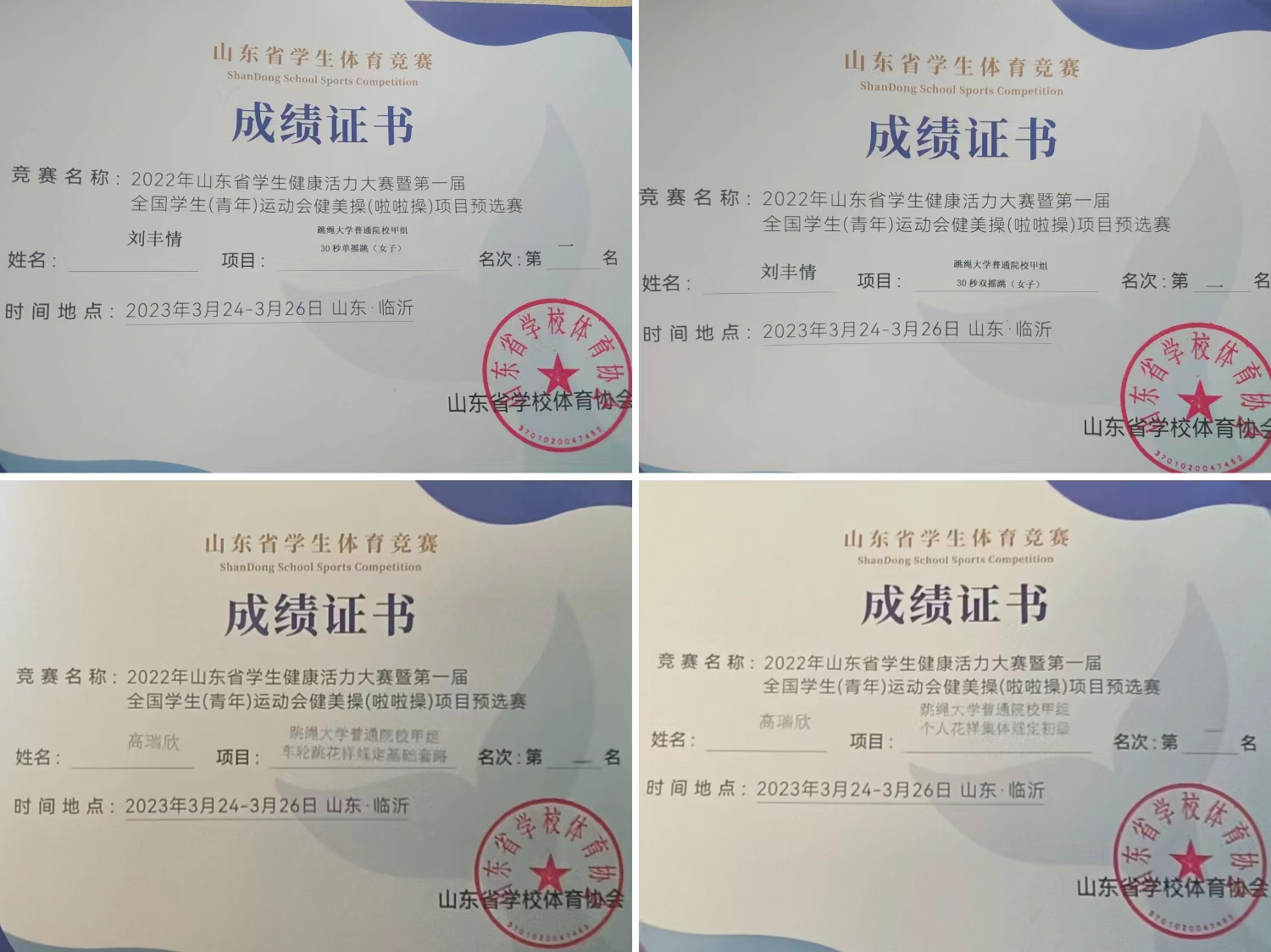 学院学生多次获得省级跳绳比赛重要奖项,在3月份举办的2022年山东省学生健康活力大赛中,法学213班刘丰情和社工221班高瑞欣获得30秒单摇跳(女子)、30秒双摇跳(女子)等个人和团体奖项共计六项,成绩优异;9999js金沙老品牌女子篮球队在青岛科技大学第四十届“育新杯”篮球赛中获得女子组冠军,实现了新的突破。