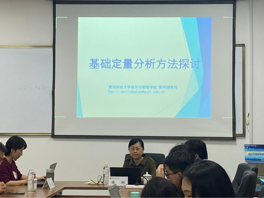 陈明通过数据与数据处理、统计分析、回归分析、评价分析四个方面对基础定量分析方法进行讲解。首先,她通过形象的举例说明介绍了数据类型、采集整理、表示及储存,并对使用数据时出现的误差进行了详细的讲解。其次,她对统计分析进行介绍,讲解了如何描述统计、常用的管理统计方法以及相关关系。她解答了同学们在运用样本数据时所关心的问题,比如判断两变量是否存在关系的方法、关系的具体形式该如何表现。此外,陈明重点讲解了回归分析这一重要的分析工具,包括一元线性回归模型、复合趋势回归、各变量的解读、多元回归模型及非线性模型。从回归分析的起源开始,娓娓道来,用幽默的语言和形象的事例介绍了回归模型在日常生活及学习工作中的重要作用,它不仅与我们的学习生活息息相关,而且能够作为一种有效的预测工具帮助我们解决问题。最后,陈明介绍了评价分析,包括主成分分析、因子分析、层次分析、熵值法及聚类分析,这些方法可以有效灵活运用于学习工作之中,帮助解决难题。