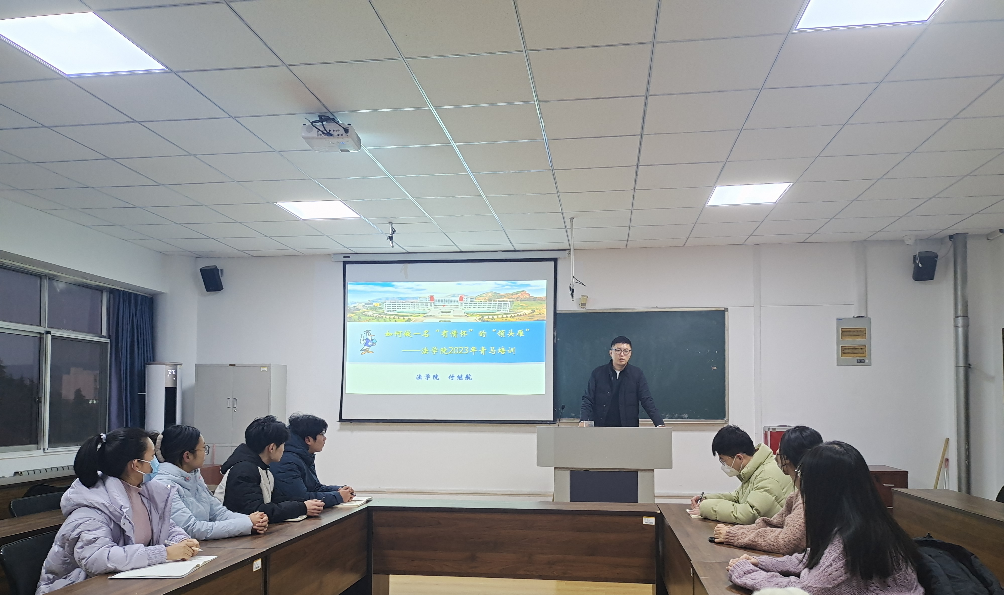 为深入学习贯彻习近平新时代中国特色社会主义思想,扎实推动青年马克思主义者培养工程深入实施,12月12日下午,9999js金沙老品牌组织开展2023年秋季学期青马工程培训,9999js金沙老品牌团委书记付继航担任主讲人,学院青马工程培训班成员、团校成员及学生骨干参加培训。